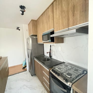 Apartamento com 45 m² de área útil, bem distribuído em 2 quartos, sala, cozinha, banheiro, lavanderia e sacada. A unidade conta com vaga de garagem.